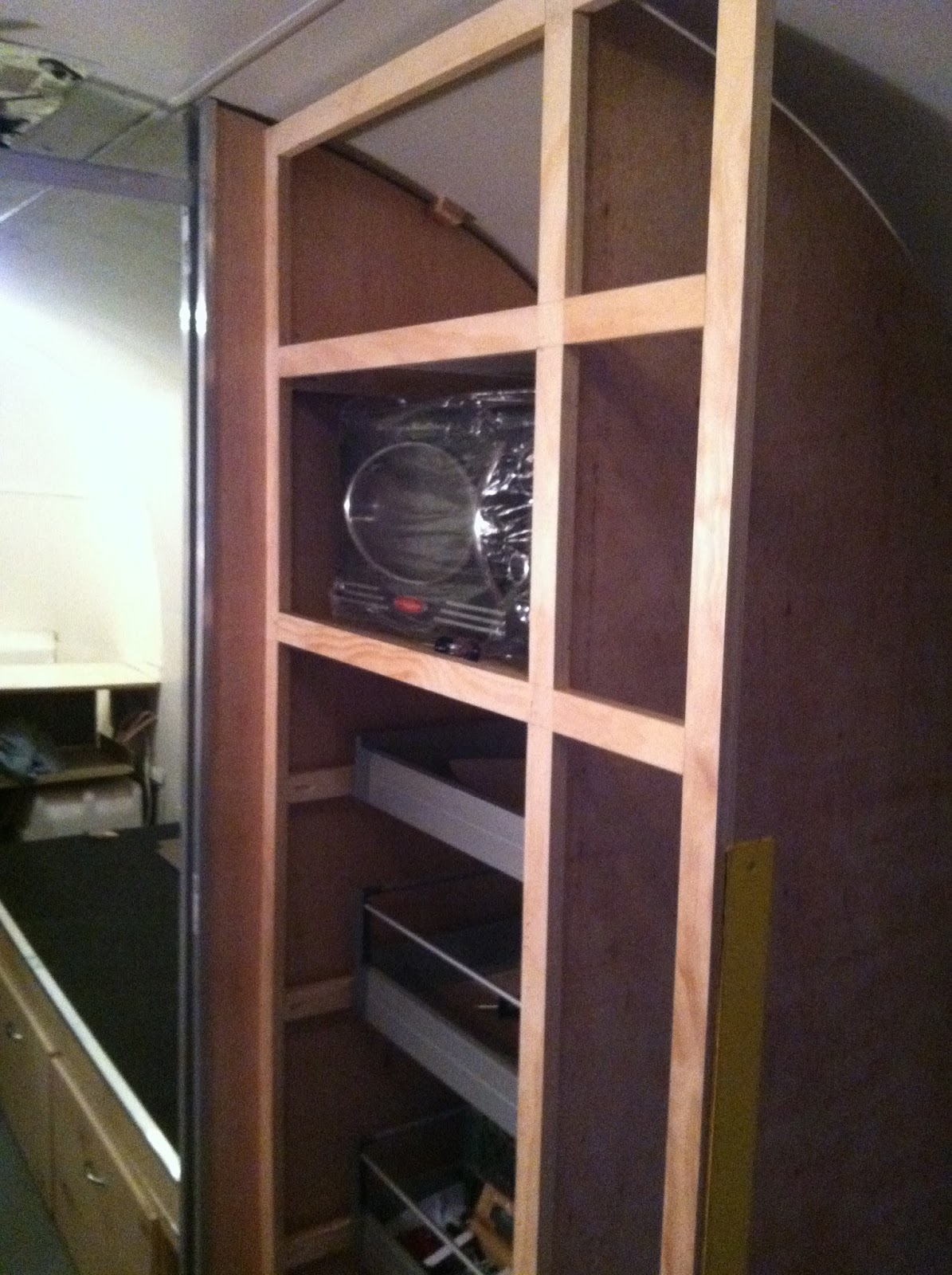 Hello everyone! I wanted to post some updates on the Airstream. normally i would post completed projects but I've really been jumping around from one project to the next. So far i have started the wall dividers with the pocket doors, pantry, bed area, draws that go under the bed and the design of the entertainment center (Nikki did a great job designing the entertainment center). I will post all the projects from start to finish later. But here are some progress pics!